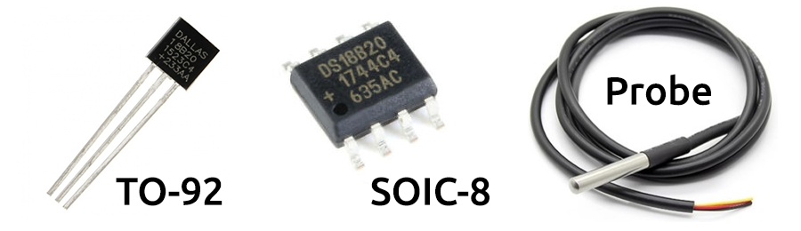 DS18B20 yuqori aniqlikdagi termodatchik hisoblanadi. DS18B20 datchigining 3 xil korpusdagi variantlari uchraydi (quyidagi rasm). Lekin ularning ishlatilishi bir xil. Bir-biridan tashqi ko’rinishi va korpusining shakli bilan farq qiladi. Bundan tashqari, datchikning 3 kabelli varianti uning o’chash elementini (metall element) yaratilayotgan Arduino qurilmasining korpusidan tashqarida ham qo’llash imkonini beradi (lekin narxi ham qimmatroq turadi).