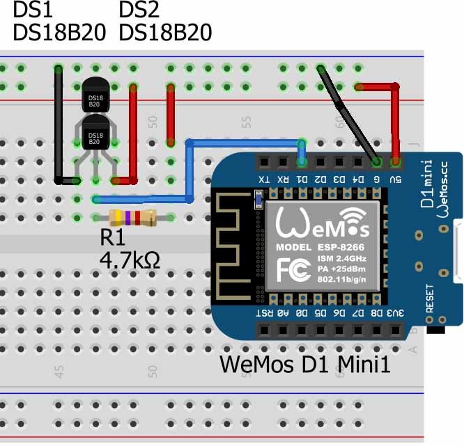 Raqamli termodatchiklar ishtirokidagi barcha loyihalarimizni Wemos D1 mini platasi uchun yaratamiz. Bu bizga kelgusida termometr ko’rsatkichlarini WiFi tarmoq yoki Internet orqali olish imkoniyatini ham yaratadi (Arduino UNO uchun ham sketch o’zgarmaydi, lekin uni to’g’ridan-tog’ri WiFi tarmog’iga ulash imkoniyati yo’q).