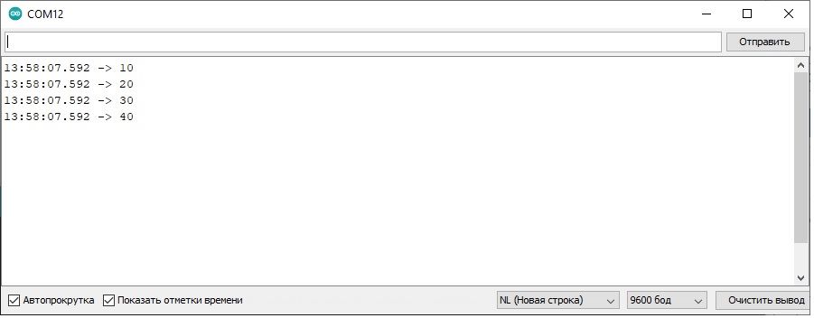 1-skrinshot (Port monitoriga chiqarilgan datchik ko’rsatkichlari nusxasi):