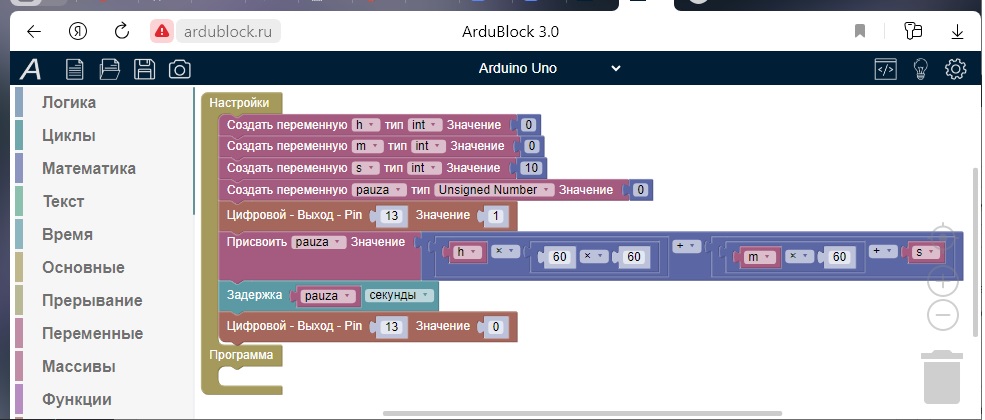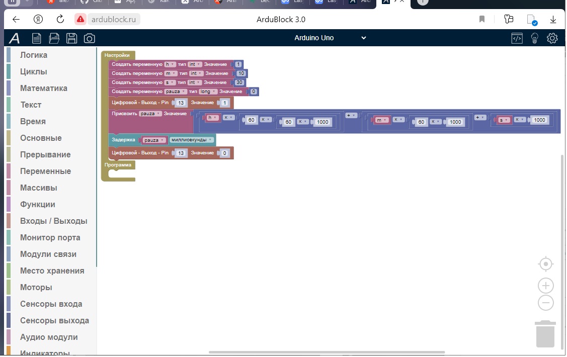 Sketchning ArduBlock dasturidagi ko’rinishi: