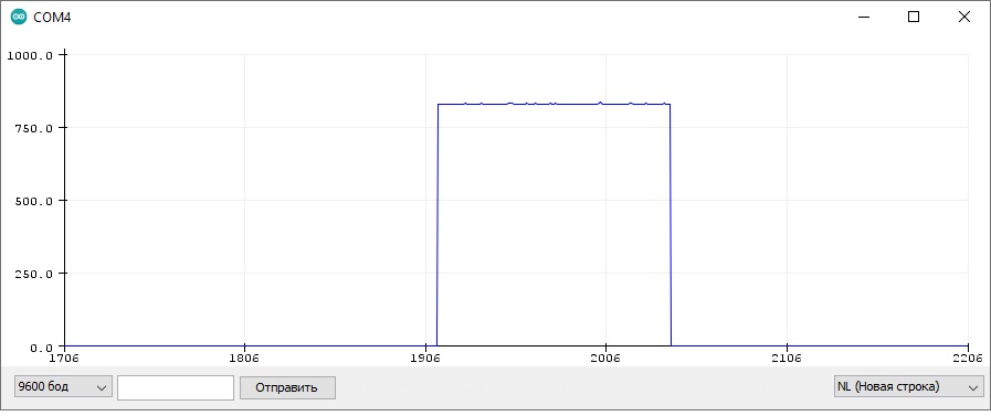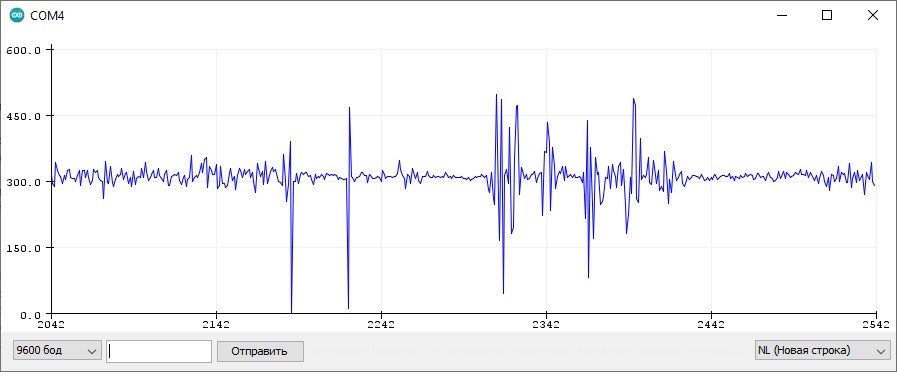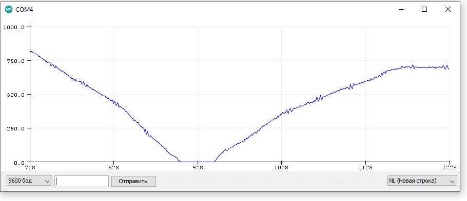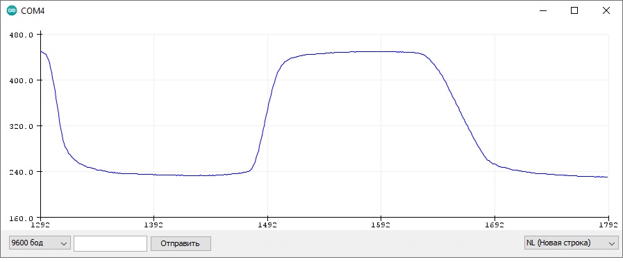 Datchik ulanganidan keyin 1 daqiqa o’tgach, uning holatini port monitorida va plotterda kuzatamiz:
