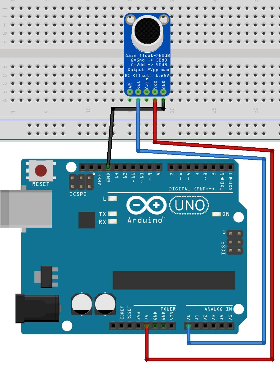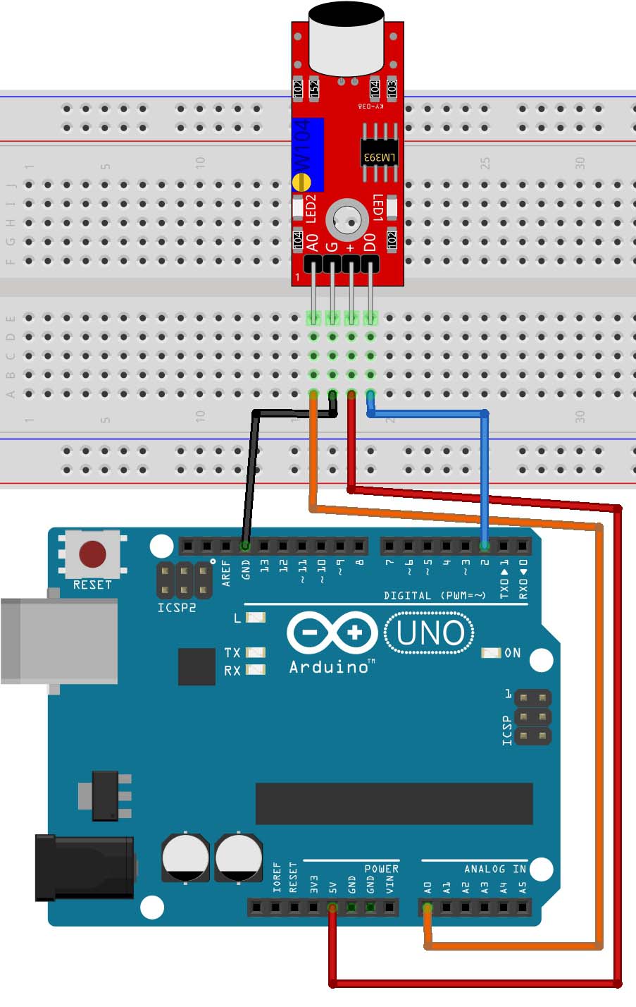 Quyidagi rasmdagi KY-038 mikrofonli modulidan foydalanilganda ham, yuqoridagi sketchdan foydalanish mumkin:
