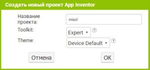 Dastlabki misol tariqasida, biz yangi “misol” loyihasini va uning asosida tegishli “Mening ilovam” mobil ilovasini yaratish, oxirida uni smartfonga olib o’tish, unga o’rnatish jarayonlarini ko’rib chiqamiz. Buning uchun tegishli akkauntga kirgandan so’ng, asosiy oynada (loyihalar ro’yxatida) “New project” tugmasini bosamiz.