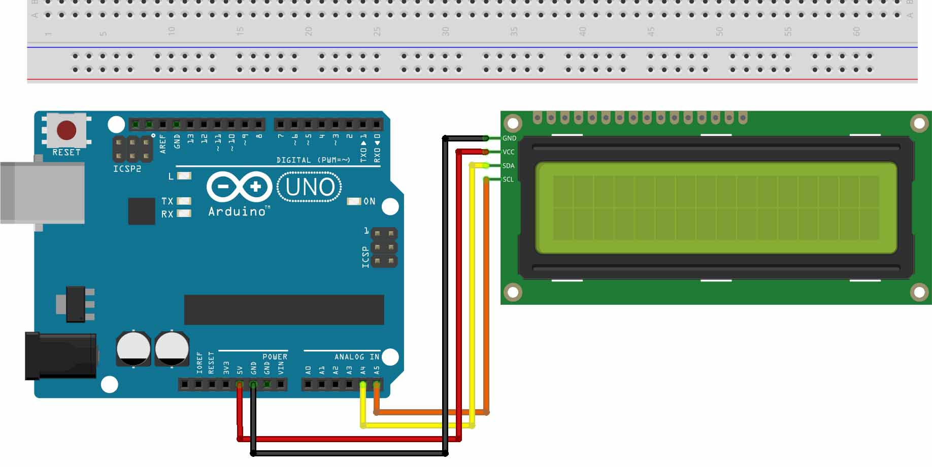 LCD1602 displeyining SDA va SCL pinlari mikrokontrollerlarning xuddi shunday nomli (AREF yonidagi) pinlariga yokiga quyidagicha ulanadi: