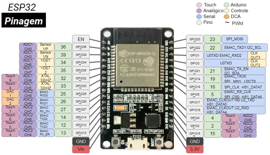 - IRDA (IR_RX, IR_TX) – infraqizil nur kodli signallarini kiritish/chiqarish pinlari (ESP platalarida uchraydi).