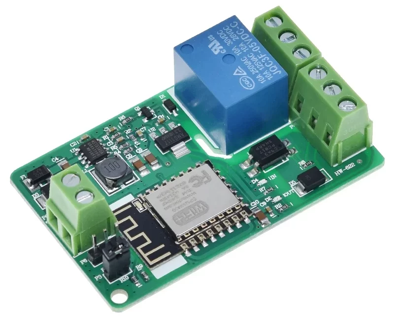 Bundan tashqari, ESP-12F moduli uchun ham bir yoki bir necha kanalli maxsus rele modullari uchraydi. Ularda ESP-12F moduli oldindan o’rnatib qo’yilgan. Bunda esp-12f modulini dasturlash uchun yana yuqoridagi kabi tahqi programmatorlar, platadagi jamperlar hamda maxsus port kontaktlaridan foydalaniladi.