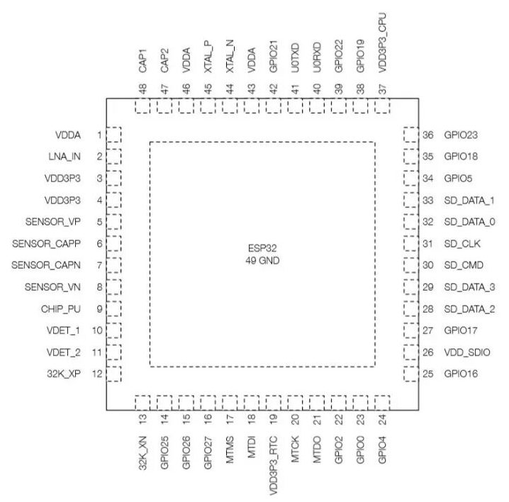 Bundan tashqari, foydalanishga ruxsat etilgan chetki pinlar soni bo’yicha ham ESP32 asosidagi platalarning 38 ta, 30 ta pinli va 16 pinli variantlari ham ko’p tarqalgan.