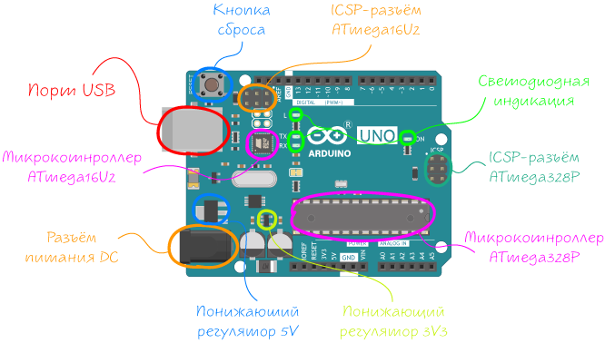 Mikrokontroller integral mikrosxemalarning bir turi sifatida qurilmadagi kiritish/chiqarish jarayonlarini umumiy nazorat qiluvchi va uni boshqaruvchi eng muhim element ekanligini tushunish mumkin (Bu jihatdan mikrokontroller kompyuterning tizimli bloki yoki ona platasiga – “материнская плата”ga qiyoslash mumkin). Demak, Arduino platasi asosidagi biron qurilmani yaratish uchun, undagi mikrokontrollerning har bir funksional qismlari, uning kiritish-chiqarish portlari (PIN lari) haqida ma’lumotga ega bo’lish muhim hisoblanadi.
