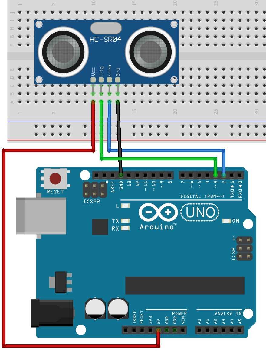 1-misol. Hech qanday bibliotekadan foydalanmagan holda masofani o’lchash sketchini ko’rib chiqamiz. Masofa millimetrlar aniqligida o’lchanadi.