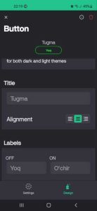 Ilovadagi boshqaruv tugmasi yordamida plataga ulangan svetodiodni o’chirib-yoqamiz, shuningdek, slayder komponenti yordamida plataning D1 raqamli piniga PWM signal yuborib, svetodiod yorug’lik darajasini regulirovka qilamiz.